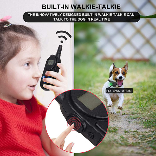 Built-in walkie-talkie:The innovatively designed built-in walkie-talkie can talk to the dog in real time.Just like talking in the ear of a dog,this will make the training more interesting and vivid.The speakers on the receiver sound clear,loud,and waterproof. Note that the walkie-talkie can only talk in one direction, and the dog cannot talk to you.